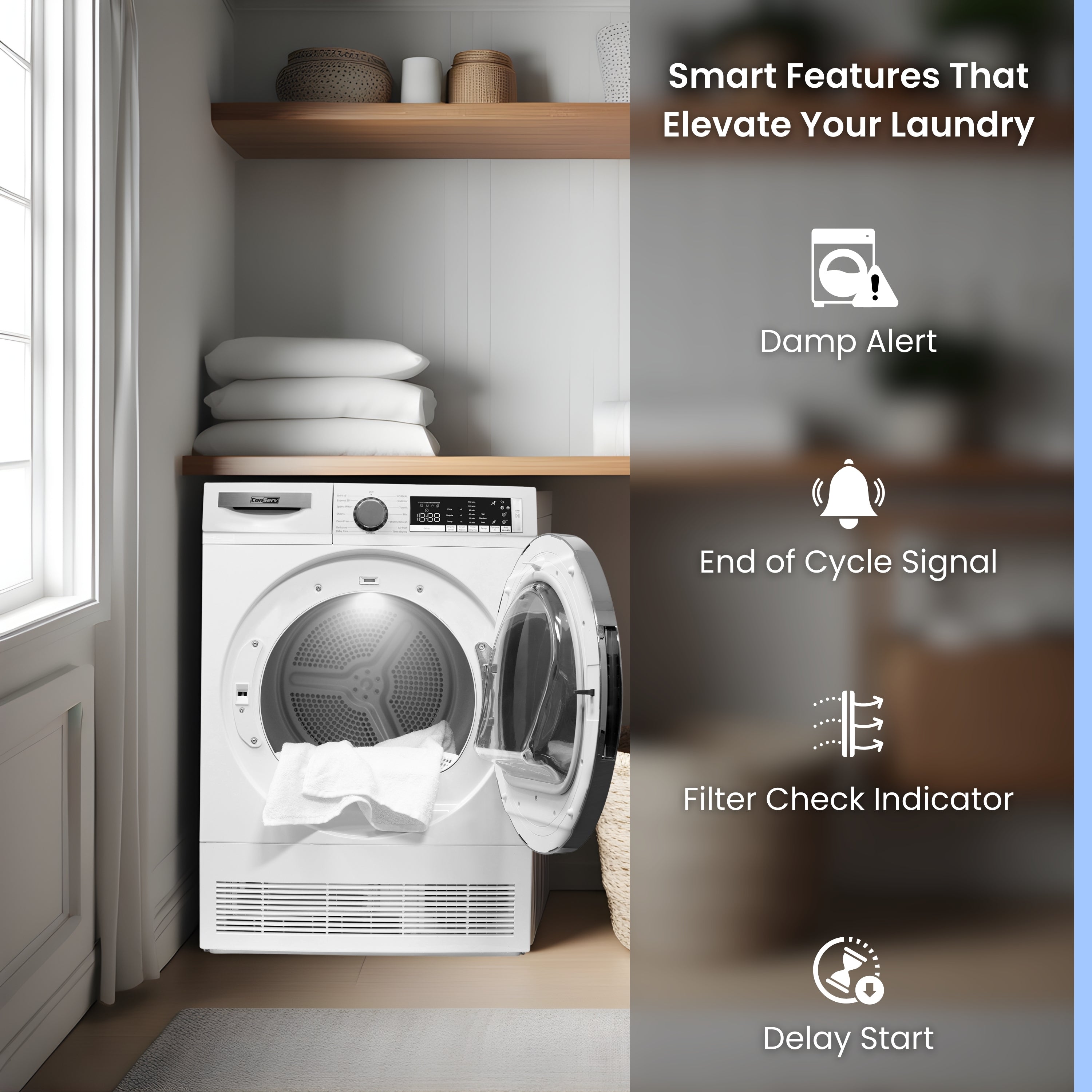 • Damp Alert - Never stress about clothing or bedding coming out of the dryer damp with the Damp Alert feature.